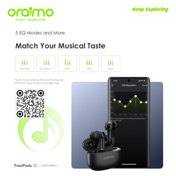 It consistently brings you the best sound quality by seamlessly tuning audio on oraimo Sound APP. oraimo also gives audiophiles and music enthusiasts the tools to tailor their exclusive style to their every whim. Get the oraimo sound app on Google PlayStore or Apple AppStore