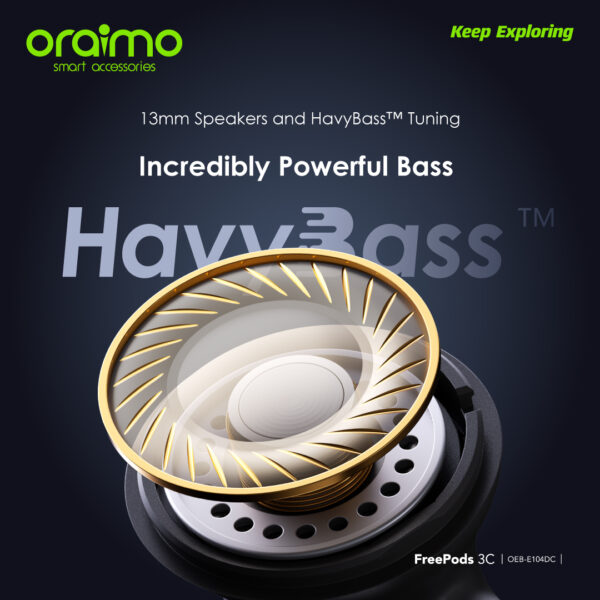 Featuring HavyBass™ exclusive algorithm, FreePods 3C provides an immersive sound experience with its 13mm high sensitive drivers delivering powerful bass, crystal-clear middle, and high frequencies. Enjoy enriched music and bring audio to life with the dynamic sound that reproduces every detail as the artist intended.